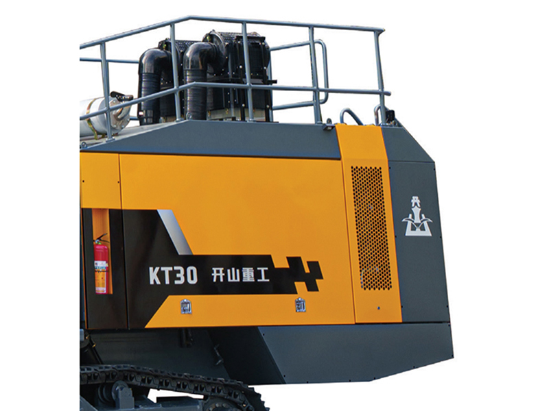 The integrated surface DTH drilling rig is capable of drilling vertical and inclined holes, and is mainly used for drilling large-diameter blast holes and pre-splitting holes in large open-pit mines and rock excavation projects. The rig is powered by a Cummins diesel engine as its sole power source, simultaneously driving the screw compressor system and the hydraulic transmission system through dual-end output.